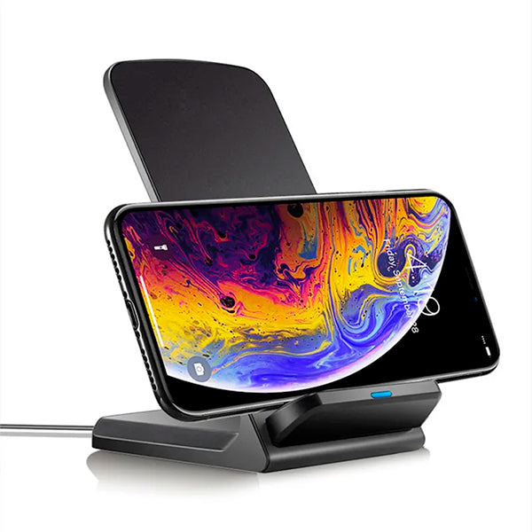 Compatible avec tous les smartphones utilisant la norme Qi, ce chargeur sans fil délivre jusqu’à 15W grâce à ses deux bobines intégrées, pour une recharge rapide et stable. Son design ergonomique maintient le téléphone en position verticale ou horizontale, pratique pour lire, travailler ou regarder une vidéo pendant la charge. L’indicateur LED informe en temps réel de l’état de charge.