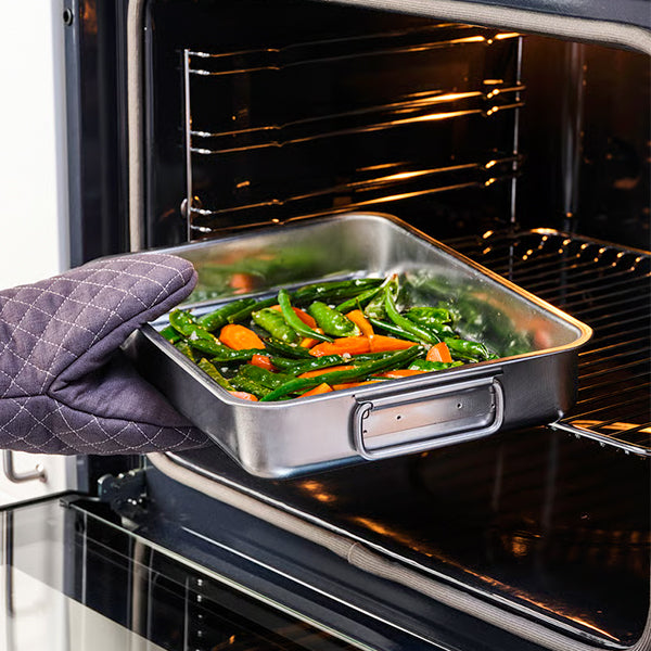 Plaque à rôtir de 30 centimètres en acier inoxydable, idéale pour le four ou le barbecue. Ses poignées solides facilitent la prise en main, même à chaud. Durable, résistante et compatible lave-vaisselle pour un entretien facile.