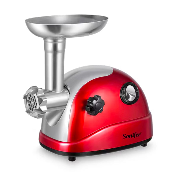 Le hachoir à viande électrique Sonifer est pensé pour préparer facilement vos farces maison, steaks hachés, boulettes ou keftas. Son moteur de 1200 W offre une bonne puissance d’entraînement, avec une fonction marche arrière pratique si un morceau bloque. Livré avec 3 grilles, il vous permet d’ajuster la texture, de la mouture fine à plus grosse, tout en restant simple à utiliser au quotidien. Couleur selon arrivage.