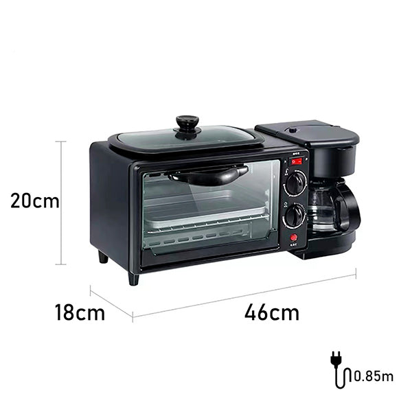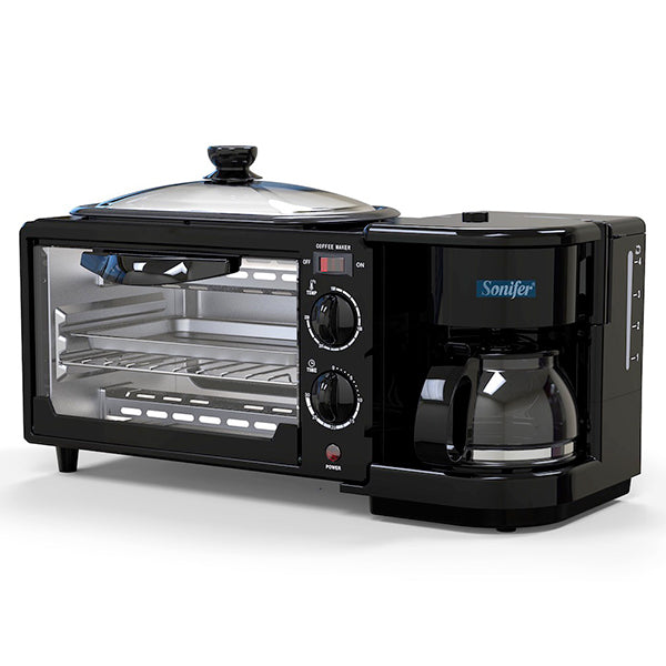 Le Combo Brunch Sonifer SF-4004S est un appareil 3 en 1 conçu pour simplifier vos petits-déjeuners. Il combine un four grille-pain de 7 L (1250 W), une cafetière de 4 tasses (450 W) et une plaque de cuisson (1250 W). Compact et pratique, il permet de préparer simultanément café, toasts et plats chauds. Facile à utiliser grâce à son contrôle mécanique par minuterie, il est idéal pour les cuisines modernes et les foyers à la recherche de gain de place.