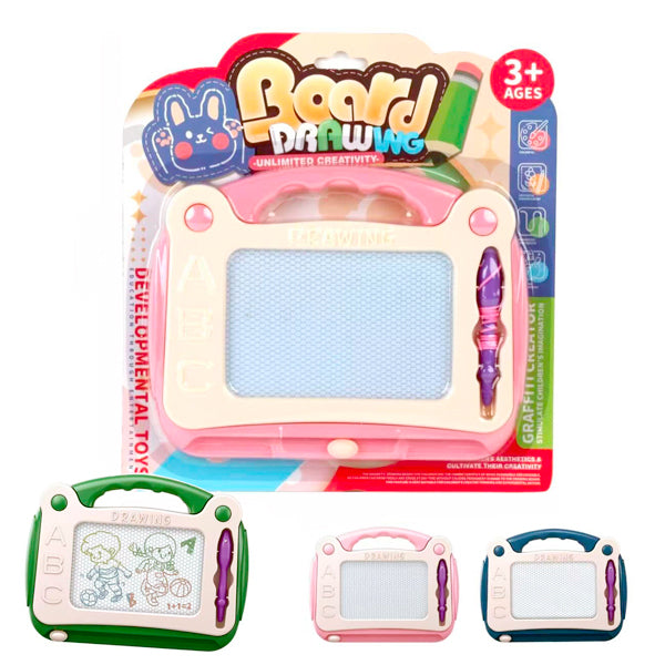 Planche à dessin magnétique, compacte et légère idéale pour les voyages ou les moments de jeu à la maison. Son écran effaçable permet de dessiner, écrire et recommencer à l’infini, sans gaspillage de papier. Le stylo magnétique inclus est facile à manipuler par les petites mains. Un jouet éducatif parfait pour développer l’imagination. Couleurs en fonction des arrivages.
