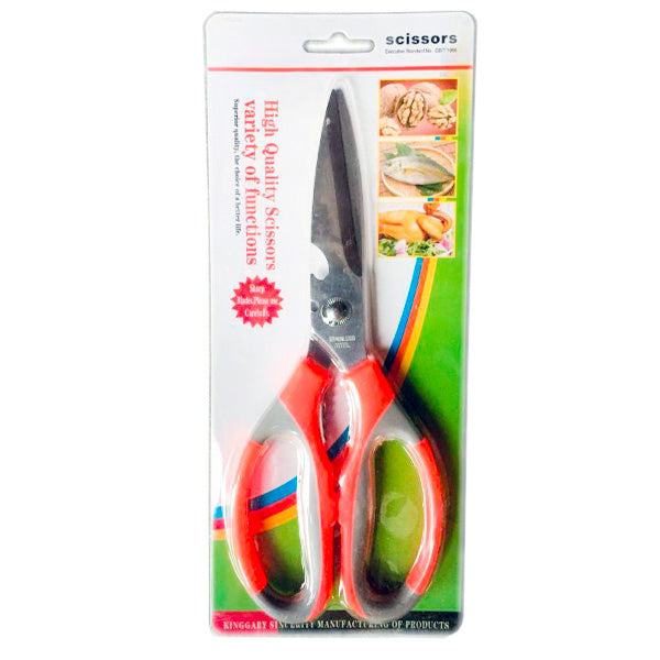Ces ciseaux multi-usage en acier inoxydable assurent une coupe nette et précise. Leurs poignées ergonomiques et antidérapantes offrent une prise confortable. Idéals dans une cuisine pour découper viande, volaille, poisson, herbes ou légumes, ils allient robustesse et praticité au quotidien. Couleurs variables en fonction des arrivages.